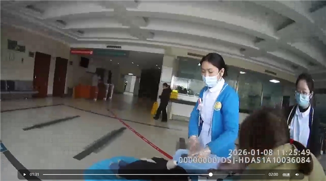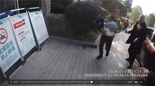 到达医院后,执法人员发现孩子的奶奶因过度焦急而双手颤抖,无法抱稳孩子。执法人员当即上前,小心翼翼接过孩子,一路小跑将其送入急诊室,亲手交到医护人员手中。